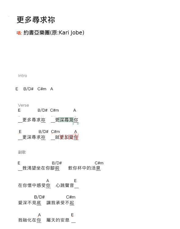 更多寻求你 和弦谱 the more i seek you
